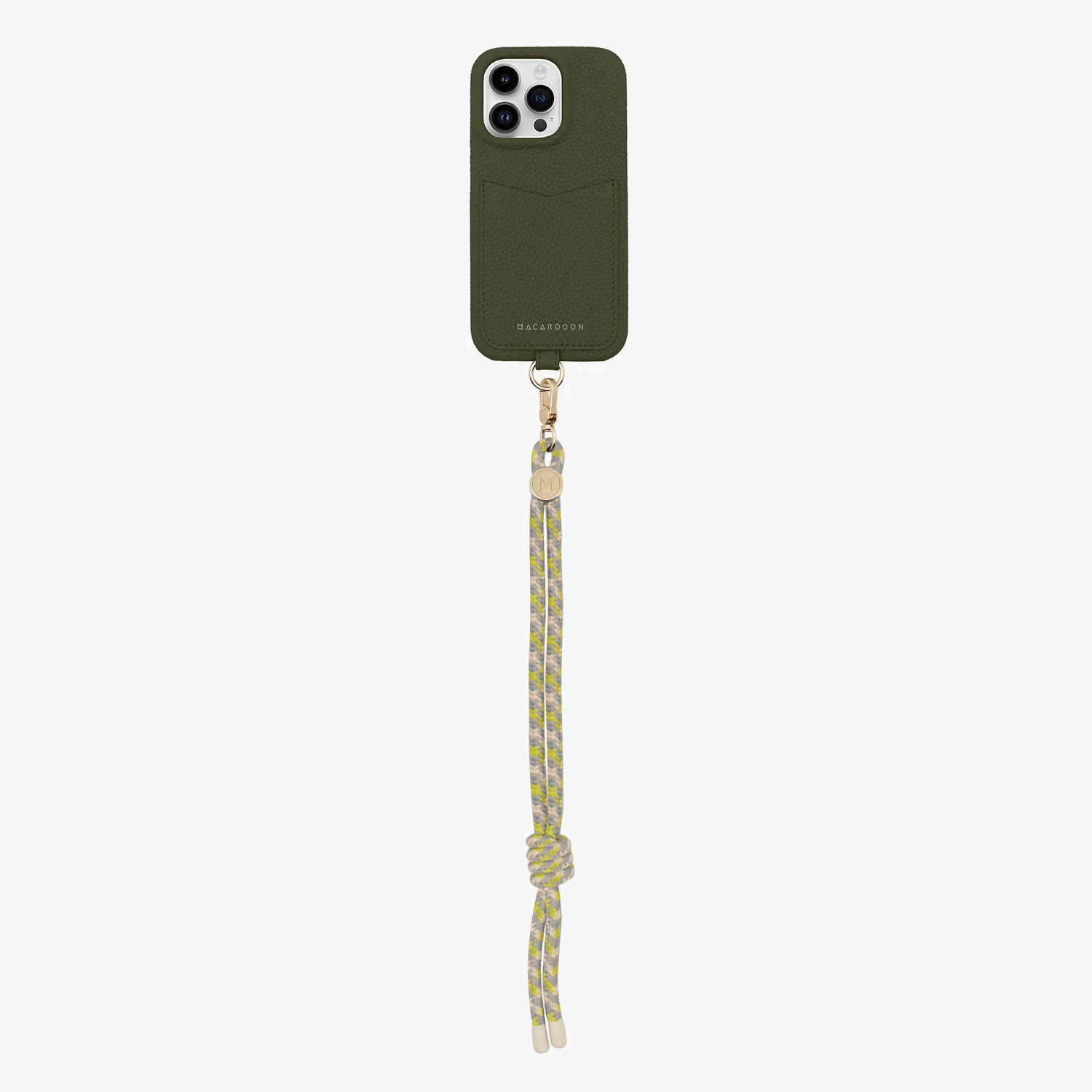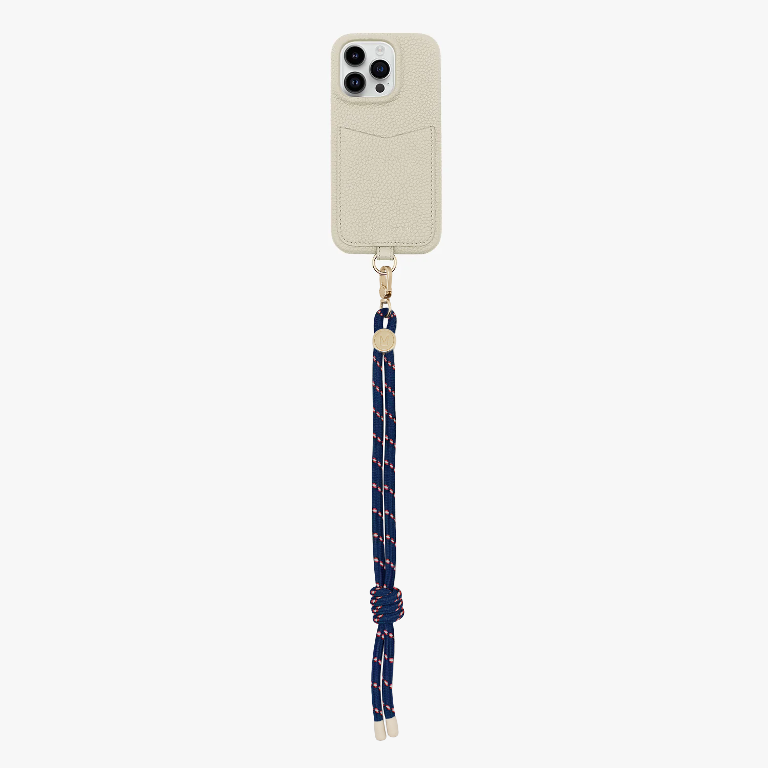 iPhone 15 Pro Sling-Kartenetui aus Leder mit Kordel-Handgelenkschlaufe