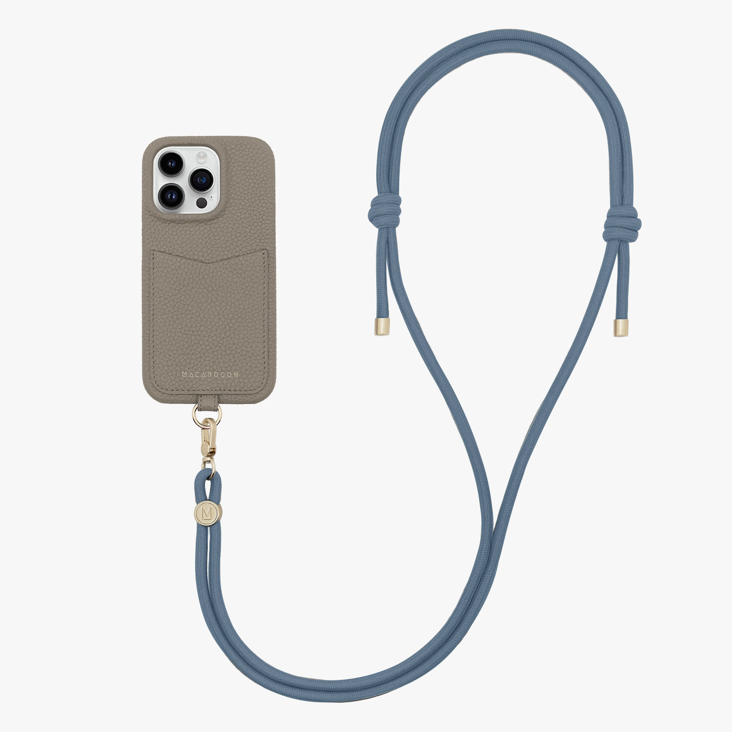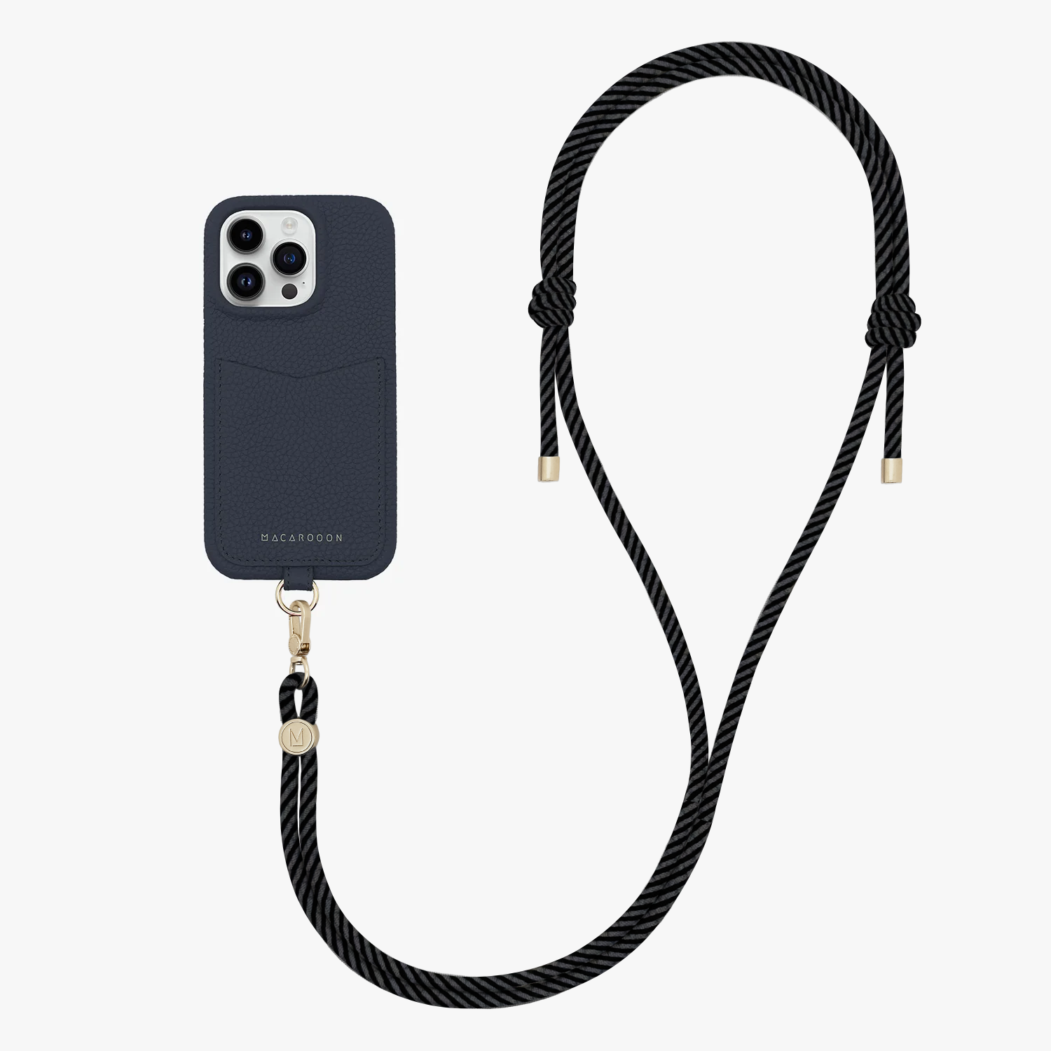 Tragen Sie Ihr Mobiltelefon mit Macarooon's überallhin mit. iPhone-Hülle aus Leder mit Kartenfach und Umhängegurt Seilriemen.