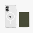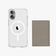 - MagSafe sur la coque transparente pour iPhone et le portefeuille à rabat en cuir pour une fixation/retrait facile.