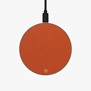 Add a touch of luxury to your desk by this sleek Wireless Charging Pad made of finest-grade chèvre leather and aluminium alloy.